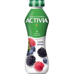 odstředěné mléko, Cukr, Smetana, Ostružiny 0,8 %, Koncentrované ostružinové pyré 0,6 %, Koncentrované malinové pyré 0,6 %, Koncentrované borůvkové pyré 0,5 %, Kousky malin 0,5 %, Citrusová vláknina, Mléčné bílkoviny, Jogurtové kultury a Bifidus ActiRegularis® CNCM I-2494 v počtu min. 4x10/100g