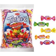 Složení: cukr, glukózový sirup, hydrogenovaný rostlinný tuk (palmový olej), zahušťovadlo (pektin E-440), regulátor kyselosti: (kyselina citronová (E-330), emulgátor (slunečnicový E-322), syrovátka v prášku, aromata, ochucovadlo (ochucovací sůl: D): jablko, višně, citron, meloun. Přírodní potravinářská barviva: šťáva z červené řepy E-162, antokyan E-163, chlorofyl E-140.