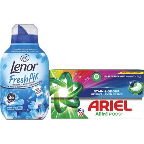Ariel kapsle color krabice 30ks + lenor aviváž fresh wind 504ml/36pd