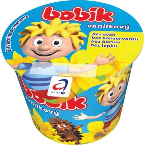 50% smetana, 36% tvaroh, cukr, škrob, jedlá želatina, syrovátkové bílkoviny, přírodní vanilkové aroma