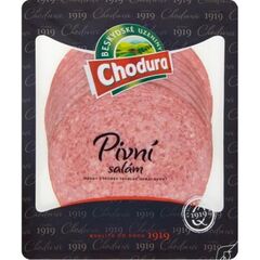 Vepřové maso (min. 82%), Vepřové sádlo, Pitná voda, Bramborový škrob, Jedlá sůl, Koření, Extrakty koření, Přírodní aroma, Stabilizátor (trifosforečnany), Živočišný protein, Antioxidant (erythorban sodný), Cukr, Barvivo (karmin), Konzervant (dusitan sodný)