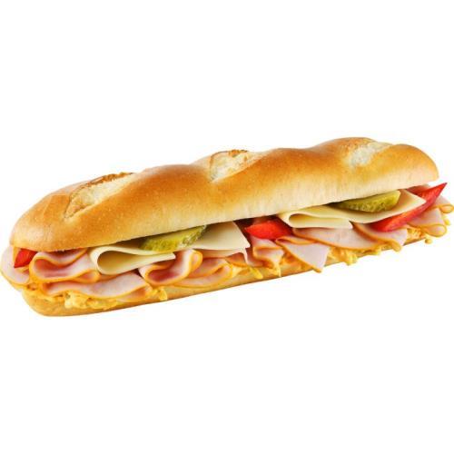 SVĚTLÁ PŠENIČNÁ BAGETA 44 %, DEBRECÍNKA 20 %, SÝR GOUDA 7 %, KAPIE 2 %, DRESINK SE ZELÍM 23 %