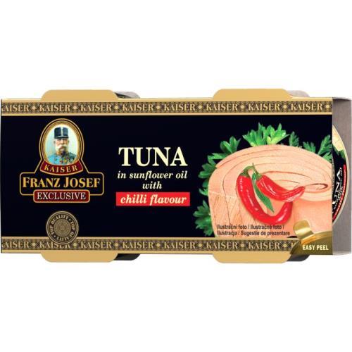 Tuňák pruhovaný*, Slunečnicový olej 34%, Jedlá sůl, Přírodní chilli aroma 0,2%, * Katsuwonus pelamis