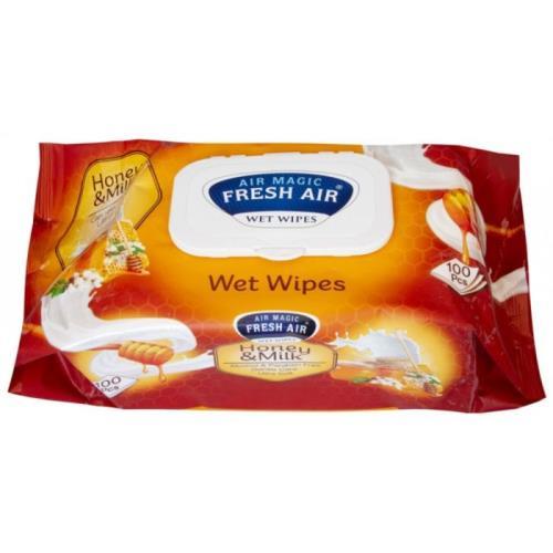 Fresh Air vlhčené ubrousky klip honeymilk 100ks
