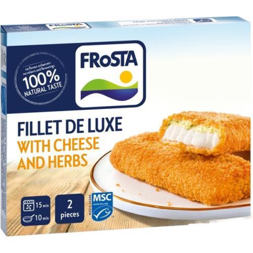 Složení: Filé z bílé RYBY 45 % (A – Treska pestrá, B – Treska tmavá, D – Hejk, K – Hoki , viz údaj na boční straně obalu), sýrová omáčka 18 % (SÝR EIDAM 9 %, voda, SMETANOVÝ SÝR 2 %, bylinky 0,3 % (petržel, kopr, pažitka), rýžový škrob, bramborový škrob, jedlá sůl, cibule, černý pepř), strouhanka 13 % (PŠENIČNÁ mouka, kvasnice, jedlá sůl, dextroza, mletá paprika, kurkuma, cukr), řepkový olej, PŠENIČNÁ mouka, voda, bramborový škrob, jedlá sůl.