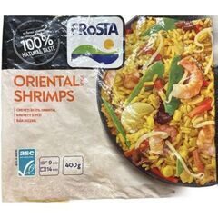 Složení: Bílá vařená rýže 44 % (voda, rýže, jedlá sůl), zelenina 34 % (cibule, mrkev, klíčky fazole mungo, hráškové lusky, kukuřice), blanšírované a glazované KREVETY 10 % ( krevety bílé ( Litopenaeus vannamei ), voda, jedlá sůl), jedlé kaštany, houba Jidášovo ucho, sójová omáčka 1,5 % (voda, SÓJA, PŠENICE , jedlá sůl), obsahuje slunečnicový olej, jedlá sůl, cukr, česnek, kurkuma, semínka pískavice řecké seno, fenykl, mletá hlíza CELERU, koriandr, mleté HOŘČIČNÉ semínko, kmín, kajenský pepř.