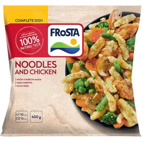 Složení: Zelenina 39 % (mrkev, cibule, fazolové lusky, brokolice), vařené nočky 38 % (voda, krupice z tvrdé PŠENICE 16 %, VEJCE , jedlá sůl), smažené a vařené kuřecí maso 11 % (kuřecí prsní řízek, jedlá sůl, sójový olej, dextróza), žampiony, voda, slunečnicový olej, jedlá sůl, MÁSLO , petrželka, muškátový oříšek, černý pepř.
