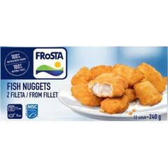 Složení: Filé z bílé RYBY 60 % (A – Treska pestrá, B – Treska tmavá, D – Hejk, K – Hoki; viz údaj na boční straně obalu), strouhanka 22 % (PŠENIČNÁ mouka, kvasnice, jedlá sůl, dextróza, mletá paprika, kurkuma, cukr), PŠENIČNÁ mouka, slunečnicový olej, voda, bramborový škrob, jedlá sůl.