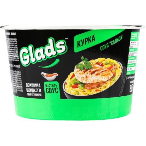 GLADS instantní nudle v misce s kuřecí příchutí a salsa omáčkou 85g