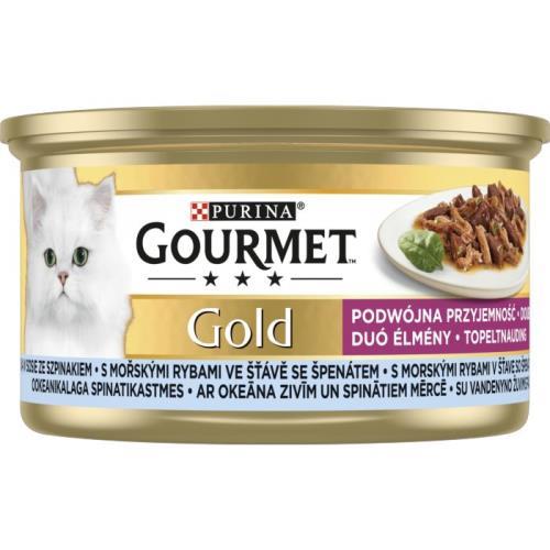 Gourmet Gold konzerva 85g mořské ryby v omáčce se špenátem.