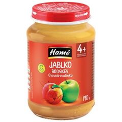 Složení: jablka (45 %), voda, broskve (15 %), fruktózo-glukózový sirup, modifikovaný kukuřičný škrob, regulátor kyselosti: kyselina citronová, antioxidant: kyselina askorbová, vitamín C.