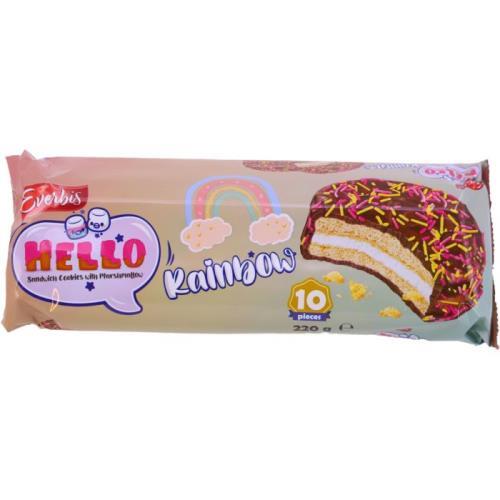 Hello kakaové sendvíčové sušenky a marshmalow a barevní cukrem 200g
