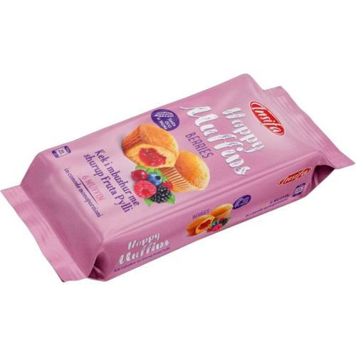 80 % korpus [pšeničná mouka, cukr, vejce, slunečnicový olej, pitná voda, glukózový sirup, pšeničný škrob, zvlhčující látka: glycerol, emulgátory: mono- a diglyceridy mastných kyselin, estery polyglycerolu s mastnými kyselinami; kypřicí látky: difosforečnany, uhličitany sodné; jedlá sůl, aroma (vanilinové), konzervant: sorban draselný, zahušťovadlo: xanthan], 20 % náplň sovocnou příchutí [glukózový sirup, cukr, pitná voda, pšeničný škrob, emulgátor: sójový lecitin, želírující látka: pektiny, aroma (ovoce), jedlá sůl, konzervant: sorban draselný].