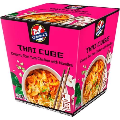 vařené nudle 45% (voda, krupice z tvrdé (durum) pšenice, sójový olej), vařené kuřecí maso 18%, kokosový extrakt, voda, cibule, cukr, šalotka, žampiony, citronová tráva, sůl, sójový olej, galangal, sardelový extrakt (ryby), modifikovaný tapiokový škrob, červené chilli, tamarind, dextróza, list kafrové limetky, kvasnicový extrakt, slunečnicový olej, regulátor kyselosti (E330,E260), barvivo (E160c).