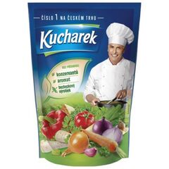 jedlá sůl, směs sušené zeleniny (15,5% ): mrkev, pastinák, brambory, cibule, petrželová nať, celer kořen, pórek, zelí, petržel kořen, rajčata, česnek, paprika sladká; látky zvýrazňující chuť a vůni: glutaman sodný, 5’ribonukleotidy sodné; cukr, škrob, pepř černý mletý, barvivo: riboflavin