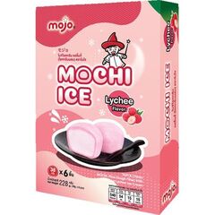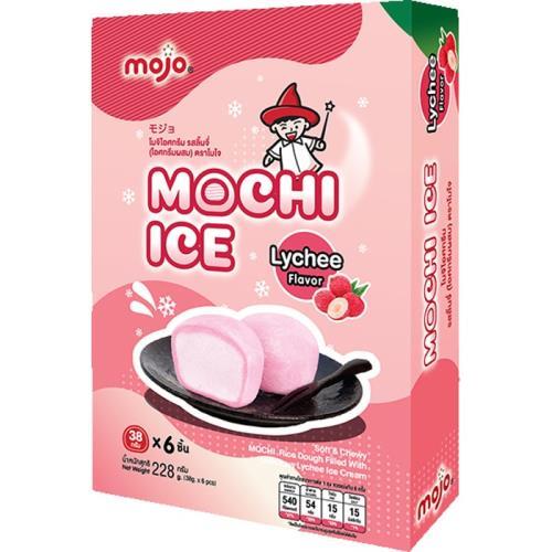 Složení: mochi těsto (voda, rýžová mouka, modifikovaný tapiokový škrob, glukózový sirup, cukr), liči (26%), cukr, liči šťáva (8%), pšeničná mouka, emulgátor (E471), stabilizátor (E410, E412, E407, E1440), barvivo (E162).