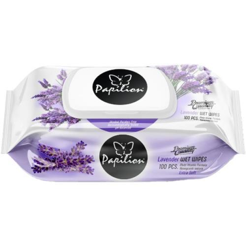 Papilion Vlhčené ubrousky lavender s klipem 100ks .