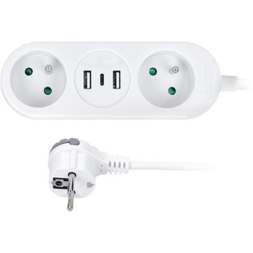 Prodlužovací přívod (2z + usb-a+c 17w) cestovní 1,5m bílý - rp=0,84 1ks