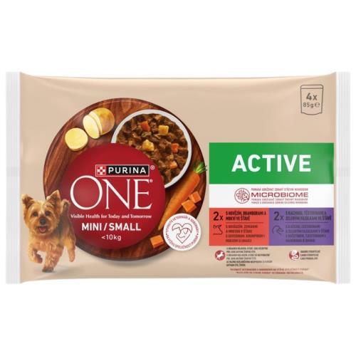 Purina One mini kapsičky mp active hovězí a kachna ve šťávě 4x85g