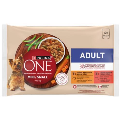 Purina One mini kapsičky mp adult kuře a hovězí ve šťávě 4x85g