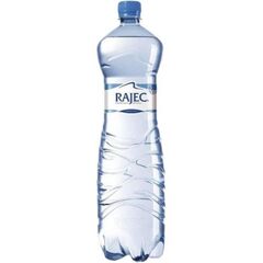 Pramenitá voda Rajec, nesycená. Celkové množství rozpustných látek: 316mg/l.