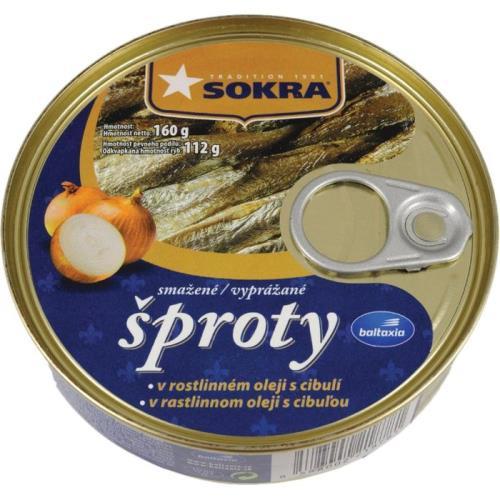 SOKRA rižské šproty smažené v rostliném oleji s cibulí 160g .