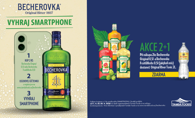 Nakupte oblíbenou Becherovku v Tamda Foods a odneste si nový telefon nebo drink zdarma!